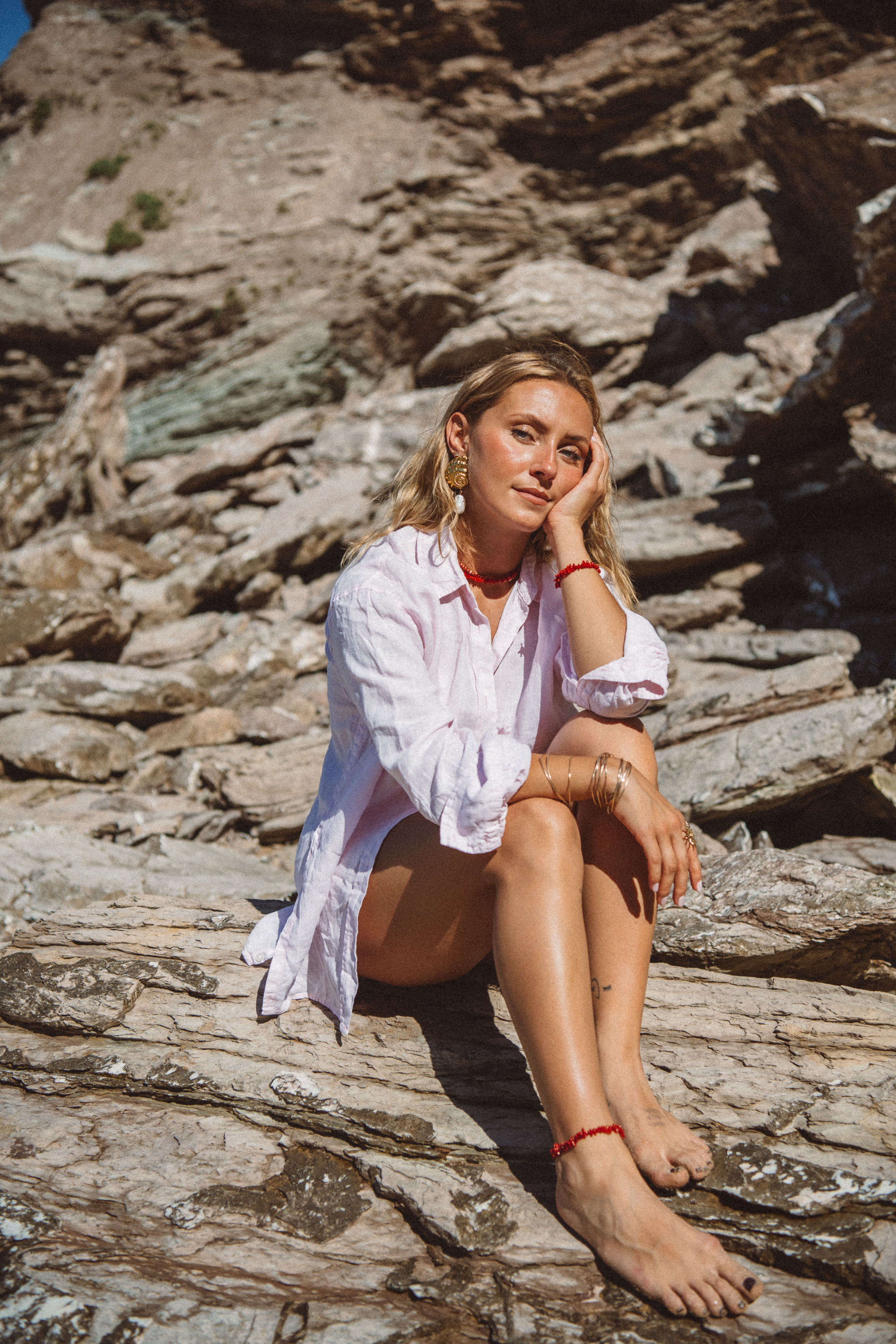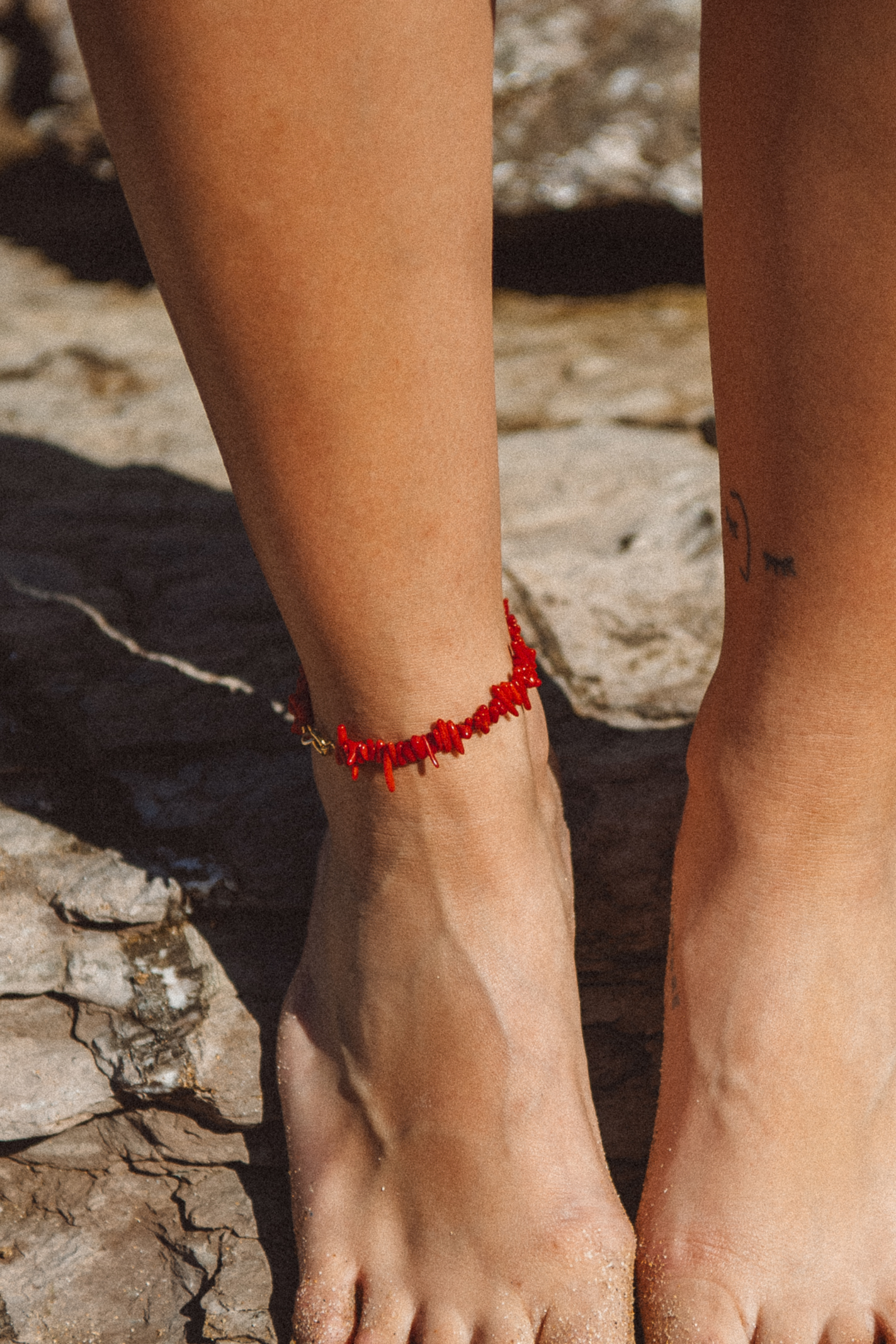 Tout d’abord, un souffle d’été se dépose au creux de la cheville. En effet, le bracelet Ipanema évoque les longues journées sur les rivages ensoleillés, là où le sable chaud épouse les teintes vibrantes du bambou de mer rouge. Par conséquent, il habille la cheville d’une lumière chaude et discrète, idéale pour celles qui souhaitent allier authenticité, finesse et liberté.