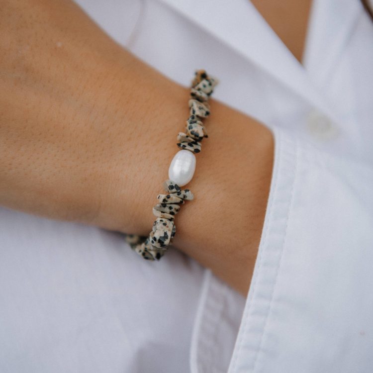 Le Bracelet se compose de perles d’œil de tigre, connues pour leurs nuances chaudes allant du jaune doré au marron clair, offrant une palette de couleurs discrètes et élégantes. L’aspect opaque et brillant de la pierre confère au bijou une allure sophistiquée tout en restant sobre. Le design minimaliste met en avant la pierre elle-même, sans ornements superflus, permettant ainsi à sa beauté naturelle de s’exprimer pleinement.