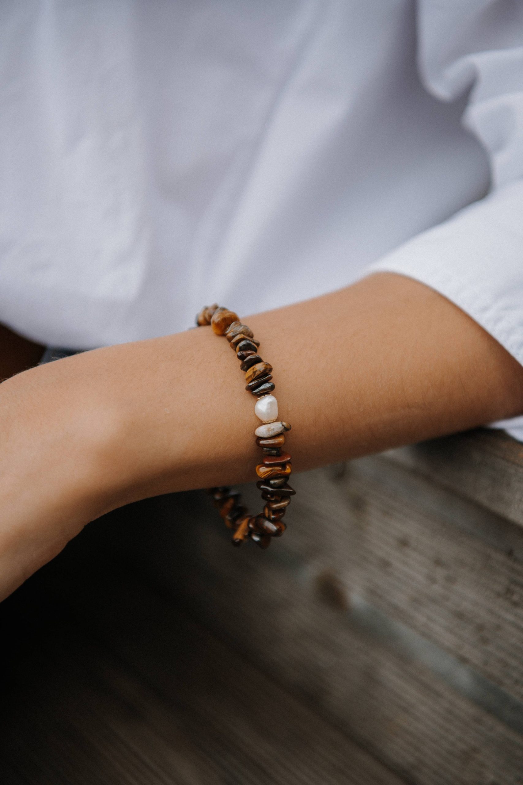 Nous savons déjà que vous aurez envie de porter notre bracelet Oeil de tigre tous les jours. Composé de perles d’œil de tigre soigneusement sélectionnées, ce bracelet révèle des nuances chaudes de brun et d’or, évoquant la lumière du soleil filtrée à travers un bois ancien. Chaque perle, avec ses reflets chatoyants, est unique, conférant au bijou un caractère distinctif.